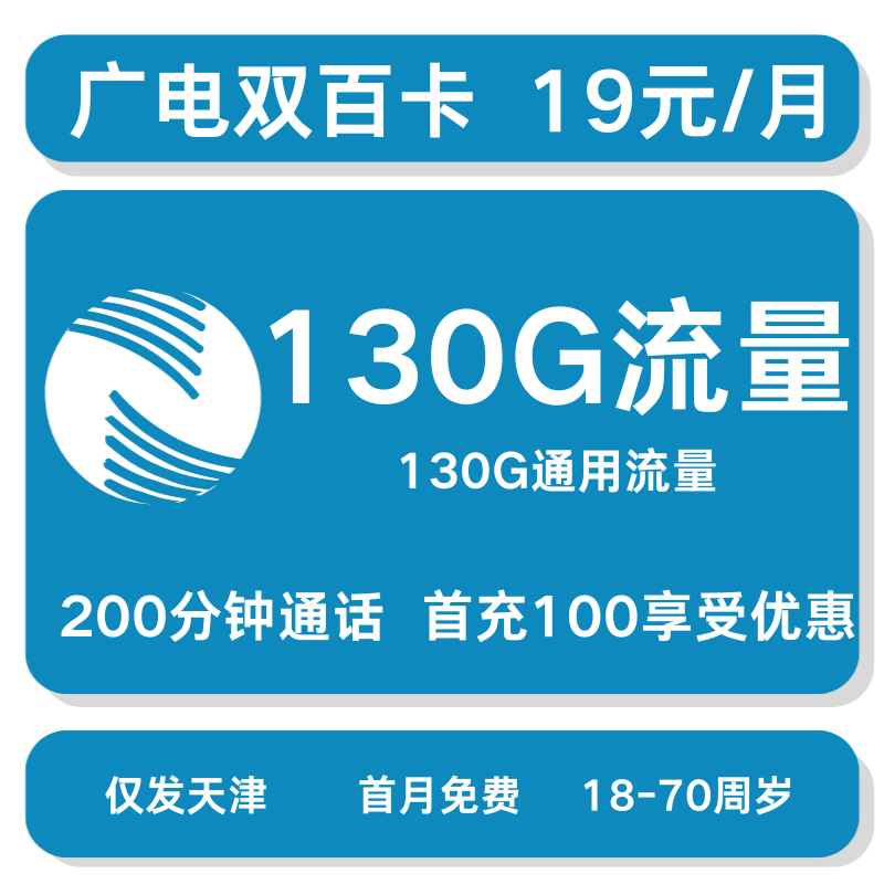 广电双百套餐19元130G+200分钟【仅发天津】