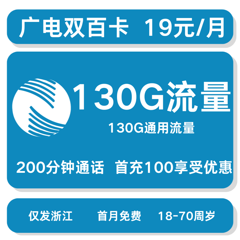 广电双百套餐19元130G+200分钟【仅发浙江】