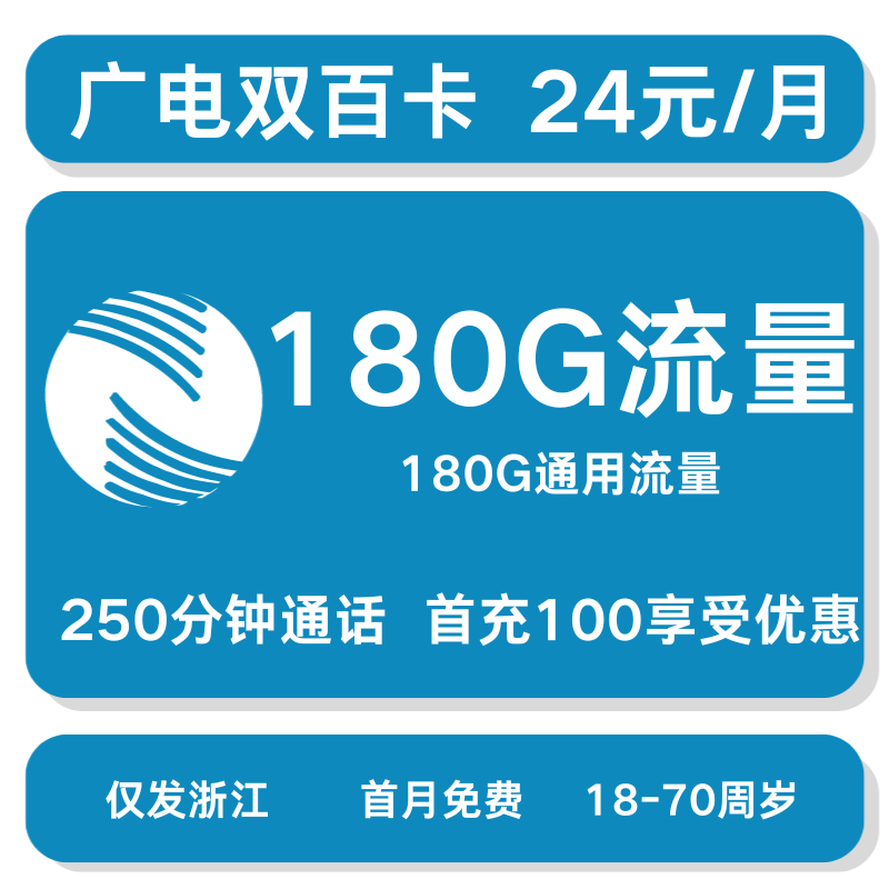 广电双百套餐24元180G+250分钟【仅发浙江】