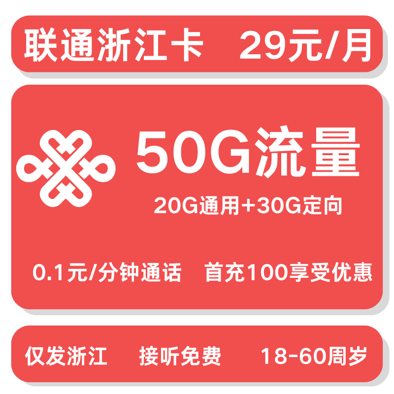 浙江省内联通39元50GB【仅发浙江】